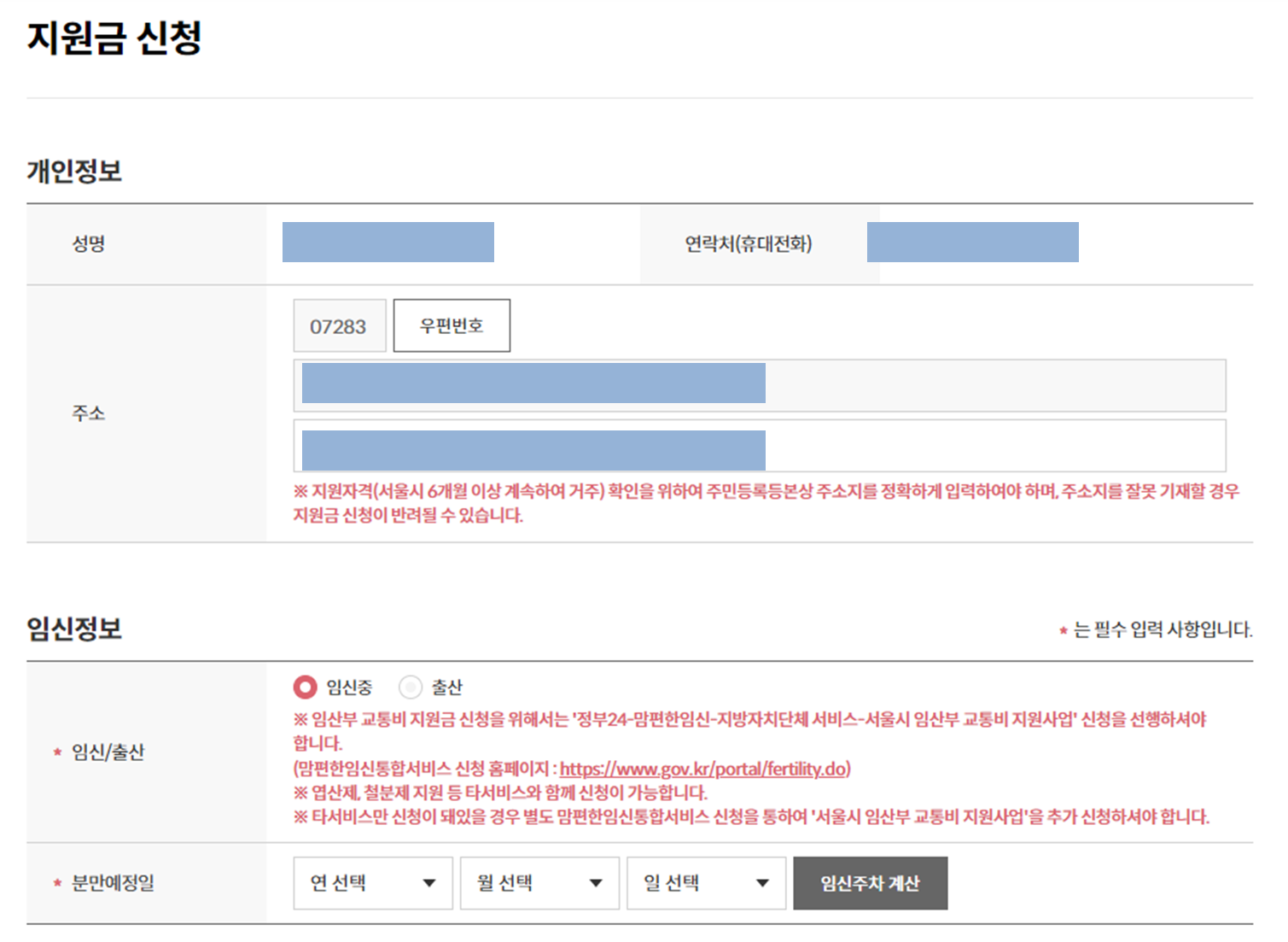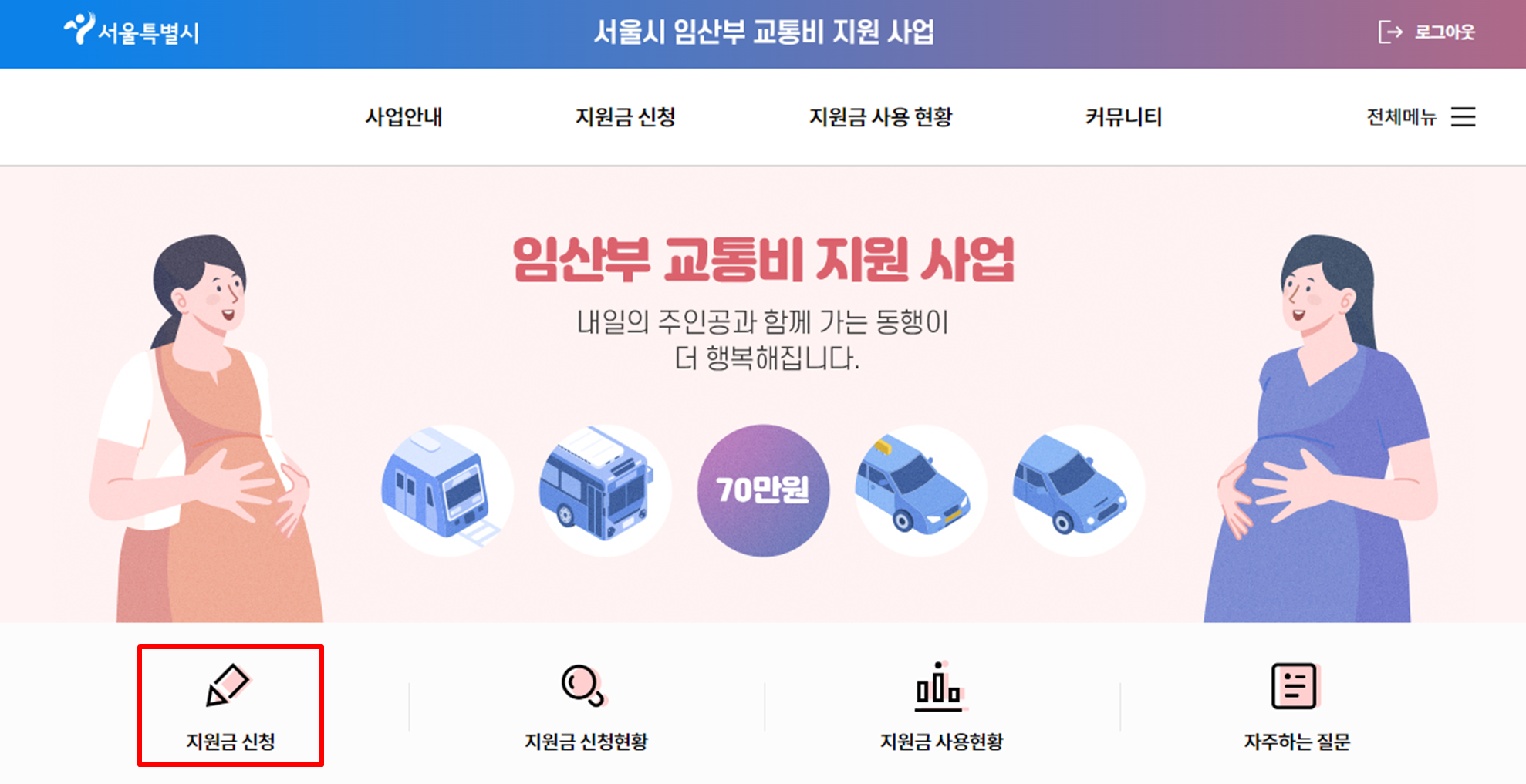 [2단계] 서울시 임산부 교통비 지원금 신청사이트에서 지원금 신청