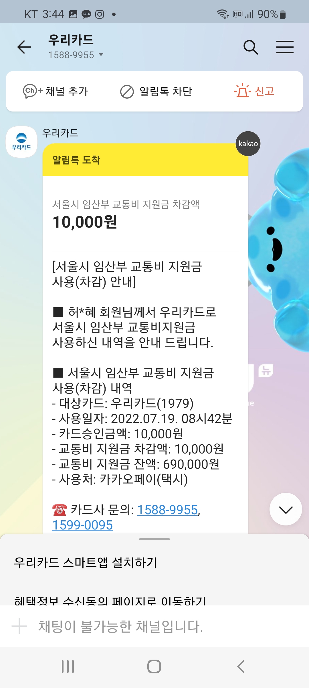 신청이 완료되면 제 경우에는 아래와 같이 우리카드에서 카톡이 오더라고요^^