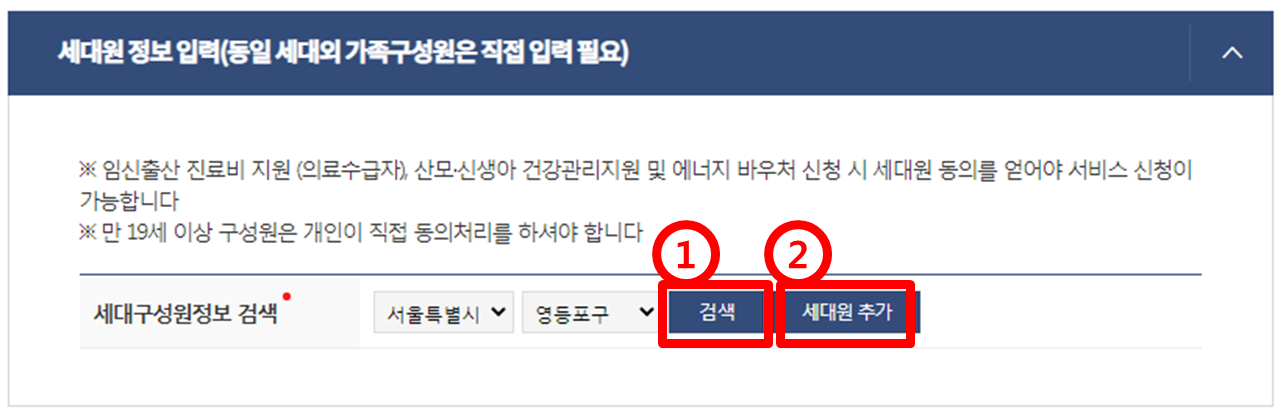 자, 그다음 세대원 정보를 입력한 후에 (향후 직접 동의 필요)