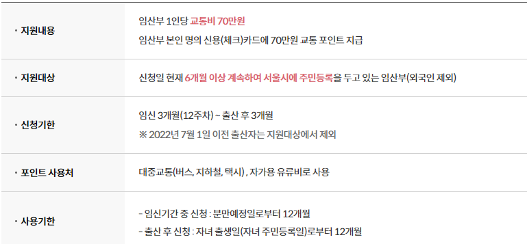 이런 와중에 단비같은 소식이 들려왔죠! 바로 서울시에서 시행하는 임산부 교통비 지원사업!